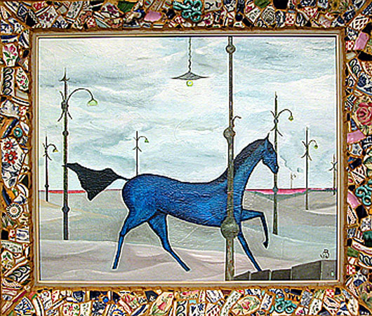 Cheval bleu dans une forêt de lampadéres